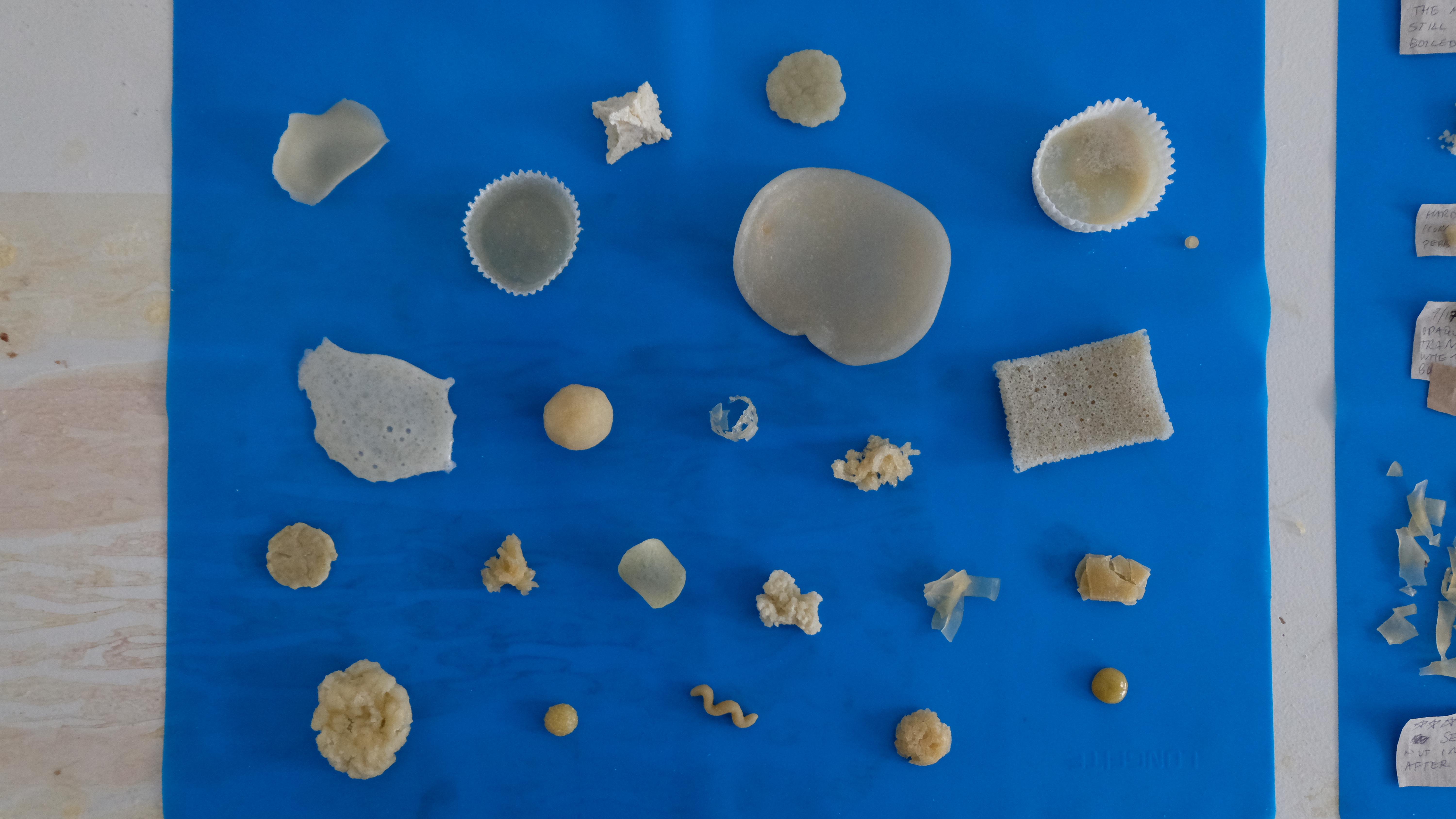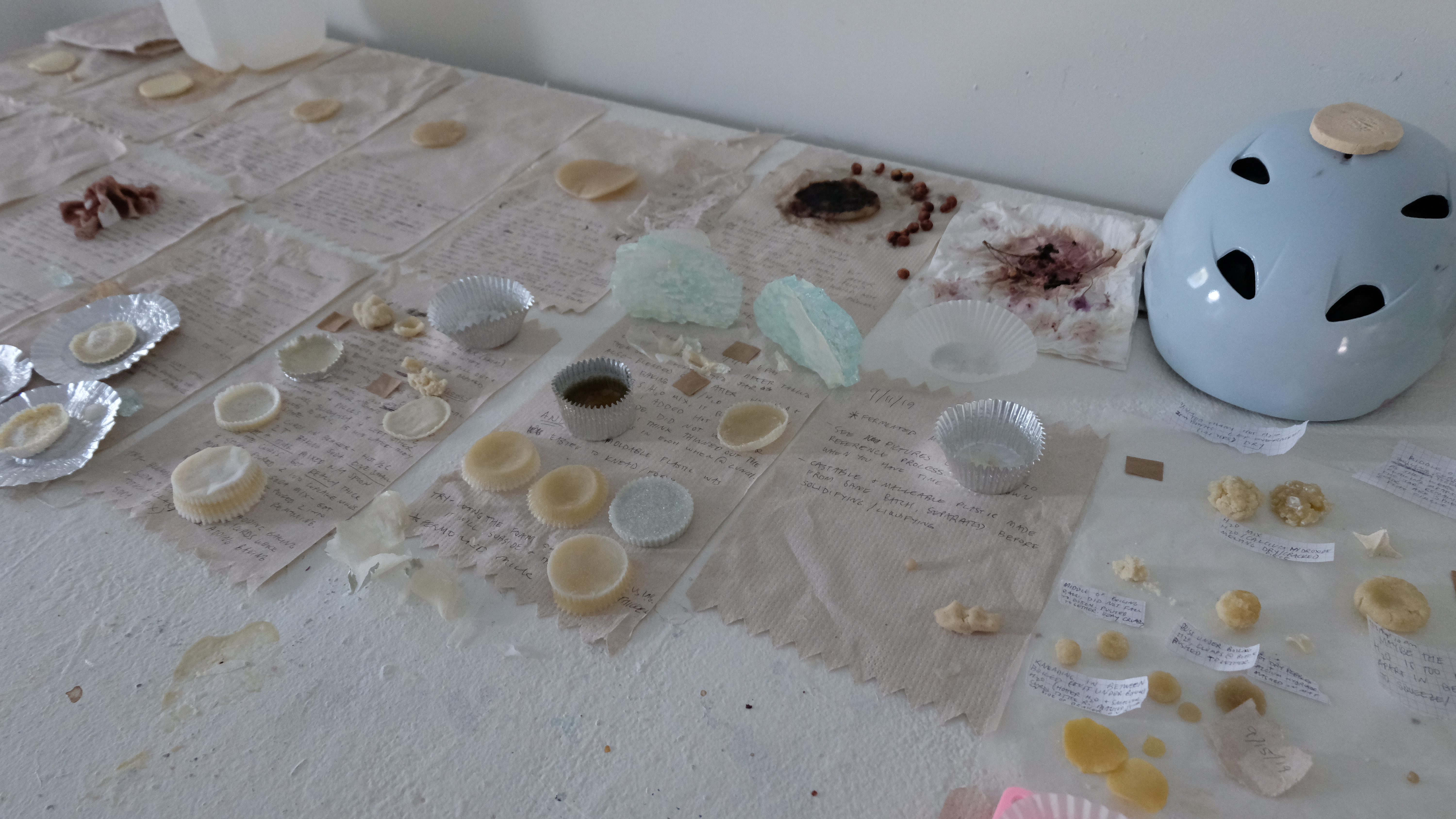 Samples of a variety of methods of turning beneficial bacteria milk into a polymer accompanied by detailed notes